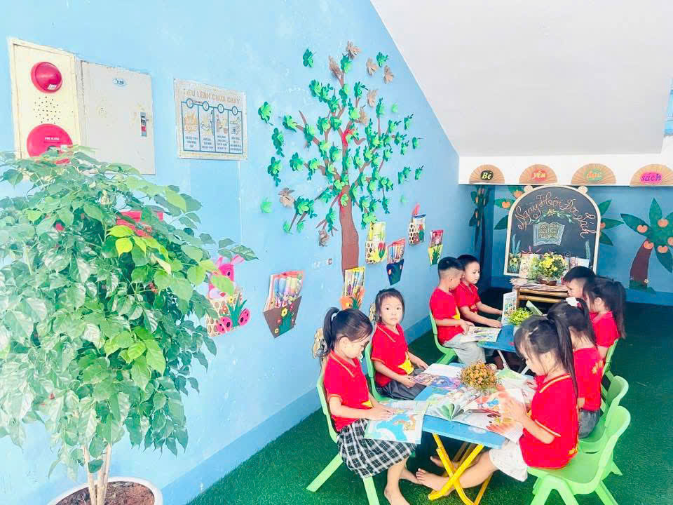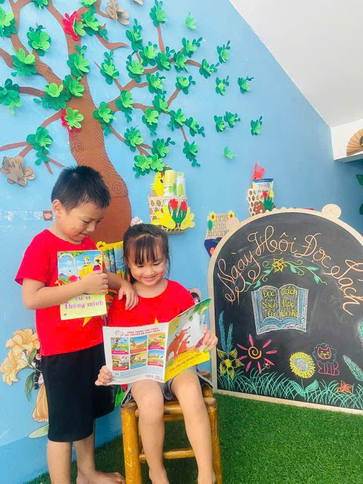 Xây dựng “Góc thư viện thân thiện” trong lớp học, khuyến khích trẻ khám phá tri thức qua tranh ảnh và truyện thiếu nhi. Như ta đã biết sách là nguồn tri thức vô tận của nhân loại, là nhân tố quan trọng giúp con người hình thành và phát triển nhân cách, tâm hồn và trí tuệ. Dạy trẻ cách đọc sách từ độ tuổi mầm non là phương pháp hiệu quả giúp trẻ làm quen với sách, bước đầu hình thành văn hóa đọc đối với trẻ.